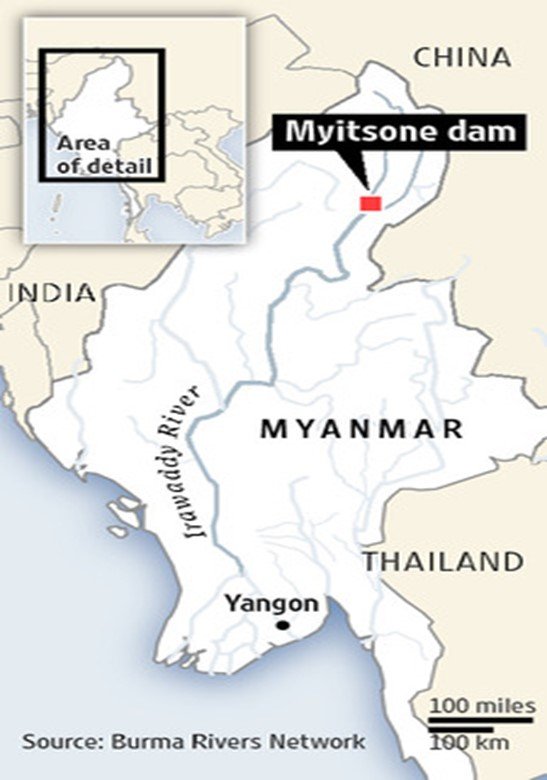 • Myanmar revived plans for a $3.6 billion Chinese-backed 6,000-megawatt Myitsone dam in northern Kachin state on the Ayeyarwady River.
