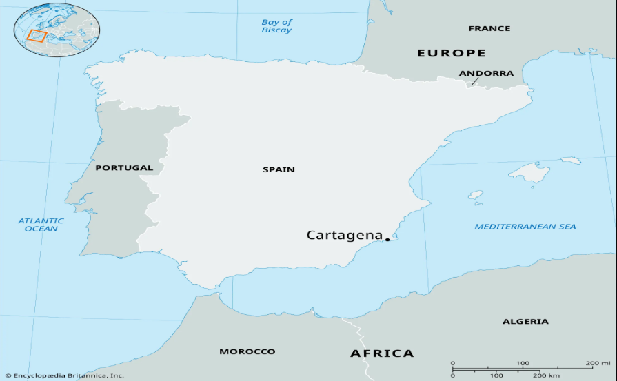 - Cartagena is the Mediterranean Port of Spain located east of the Strait of Gibraltar.